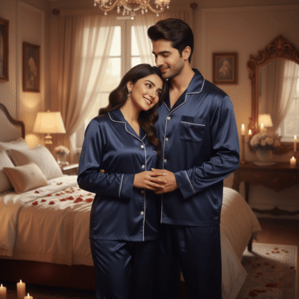 Original price was: Rs7,000.0.Rs4,999.0Current price is: Rs4,999.0.Silk New Couple Pajama Set (Blue) – Luxury & Comfortable Nightwear for Couples