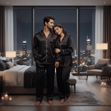 Silk New Couple Pajama Set (Black) – Luxury & Comfortable Nightwear for Couples